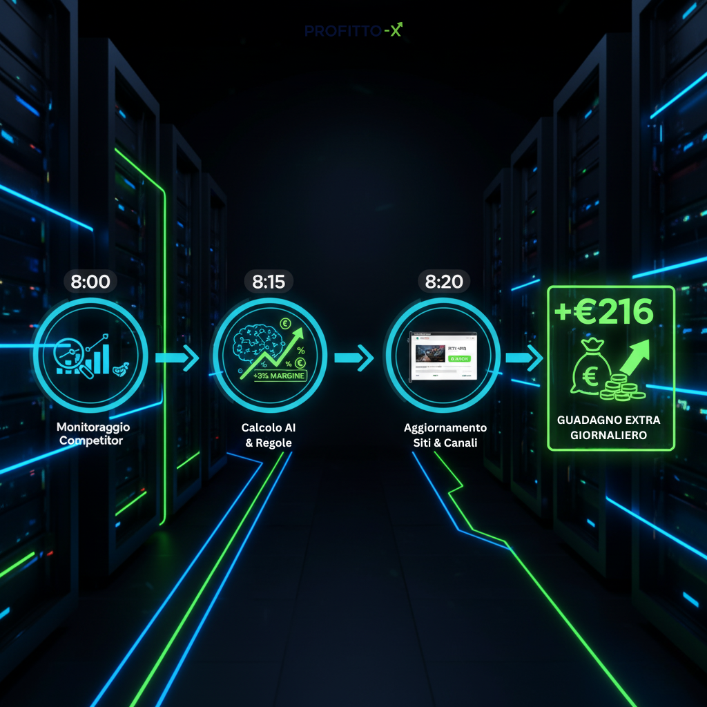 ProfittoX: L'unico sistema AI che trasforma il pricing da problema a vantaggio competitivo per rivenditori italiani. Più margini, meno lavoro manuale, controllo totale.