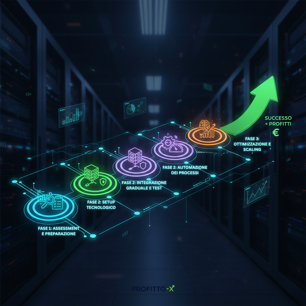 - Fase 1: Assessment e Preparazione (Settimana 1): Analizziamo insieme la tua situazione attuale per identificare i "quick wins", definire obiettivi di ROI chiari e "guardrail" di sicurezza basati sulle tue regole di business.
