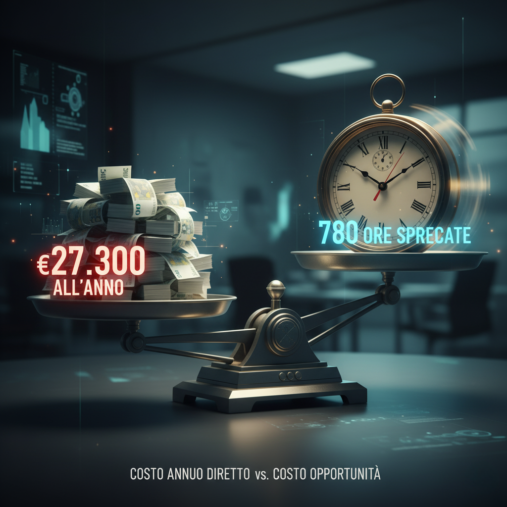 Questo numero dovrebbe farti riflettere. Stiamo parlando di quasi trentamila euro che ogni anno vengono spesi non per far crescere l'azienda, ma per un'attività ripetitiva, a basso valore e inefficiente.